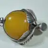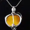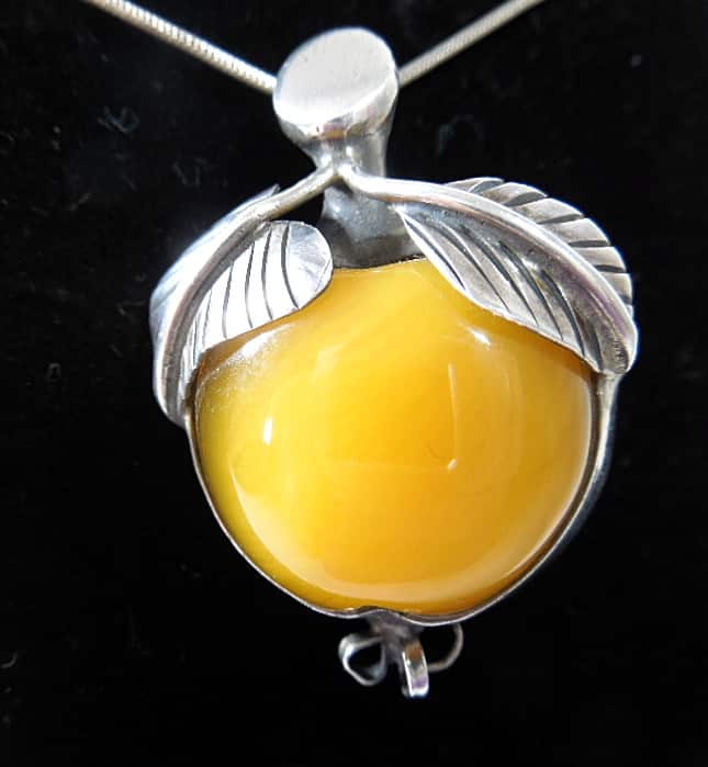 Quality Amber Silver set pendant/brooch combination representing an apple. The Amber is superior quality with fine flowing lines to it. The setting is unmarked but tests positive for silver. Very possibly of Polish origin.