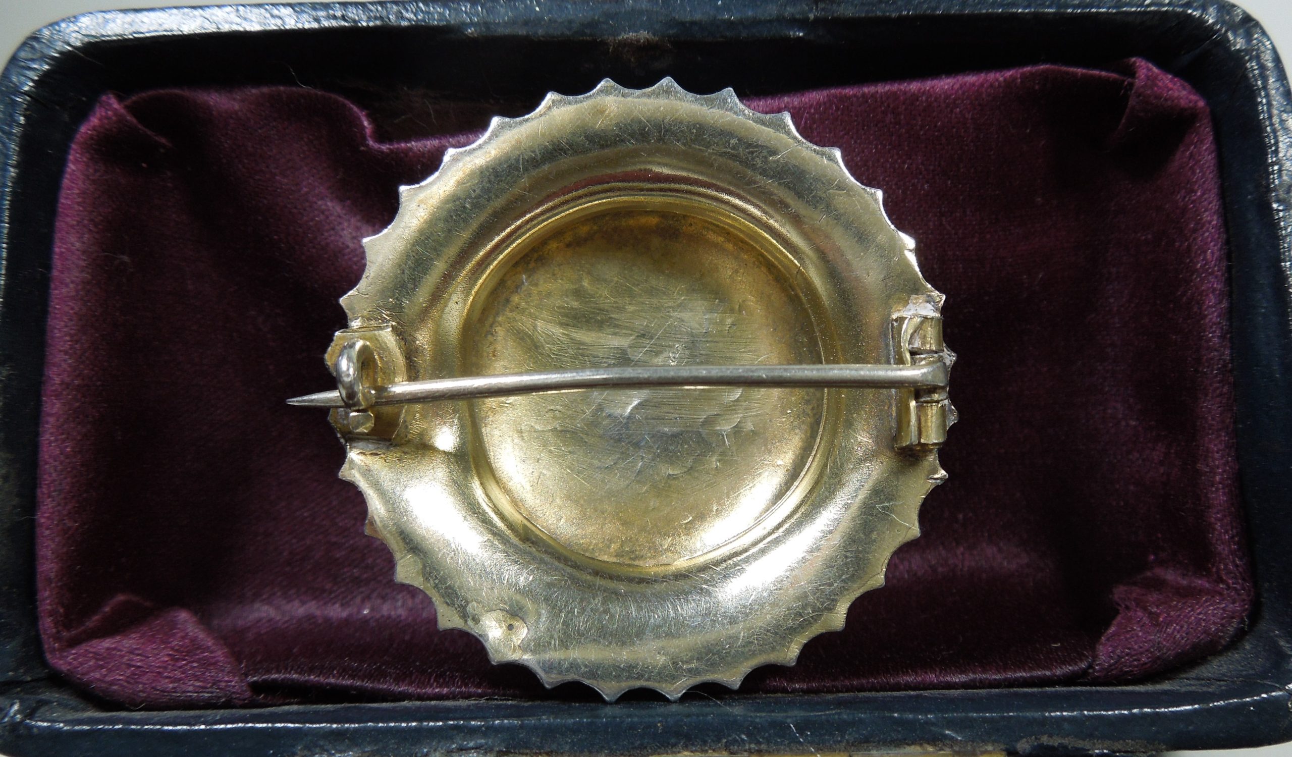 It measures 3cm in diameter and the pin protrudes slightly beyond the setting, also typical of brooches made during the Victorian period.